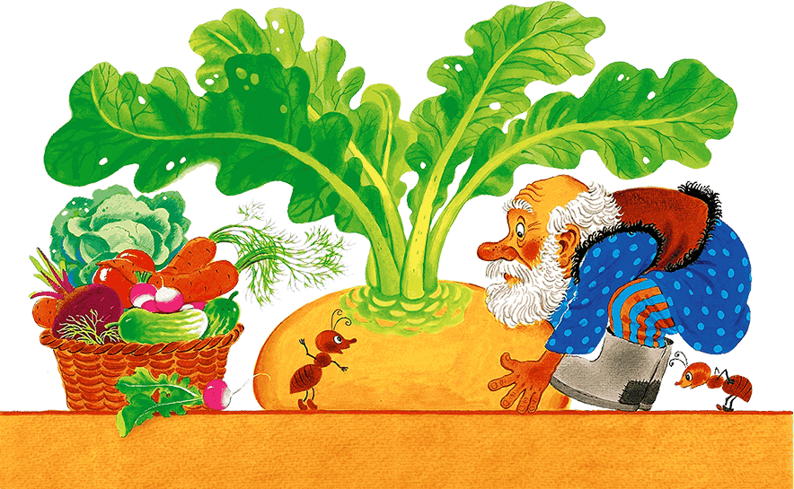 Одна из наших Репок, как и Курочка Ряба, из серии «Озорные книжки» издательства «Махаон» (Лабиринт, My-shop). На каждого героя отдельный разворот. Но книга бледновата. Хотя сыну нравится.