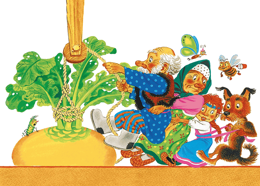 Мышка за Машку, Машка за Жучку, Жучка за внучку, внучка за бабку, бабка за дедку, дедка за репку.