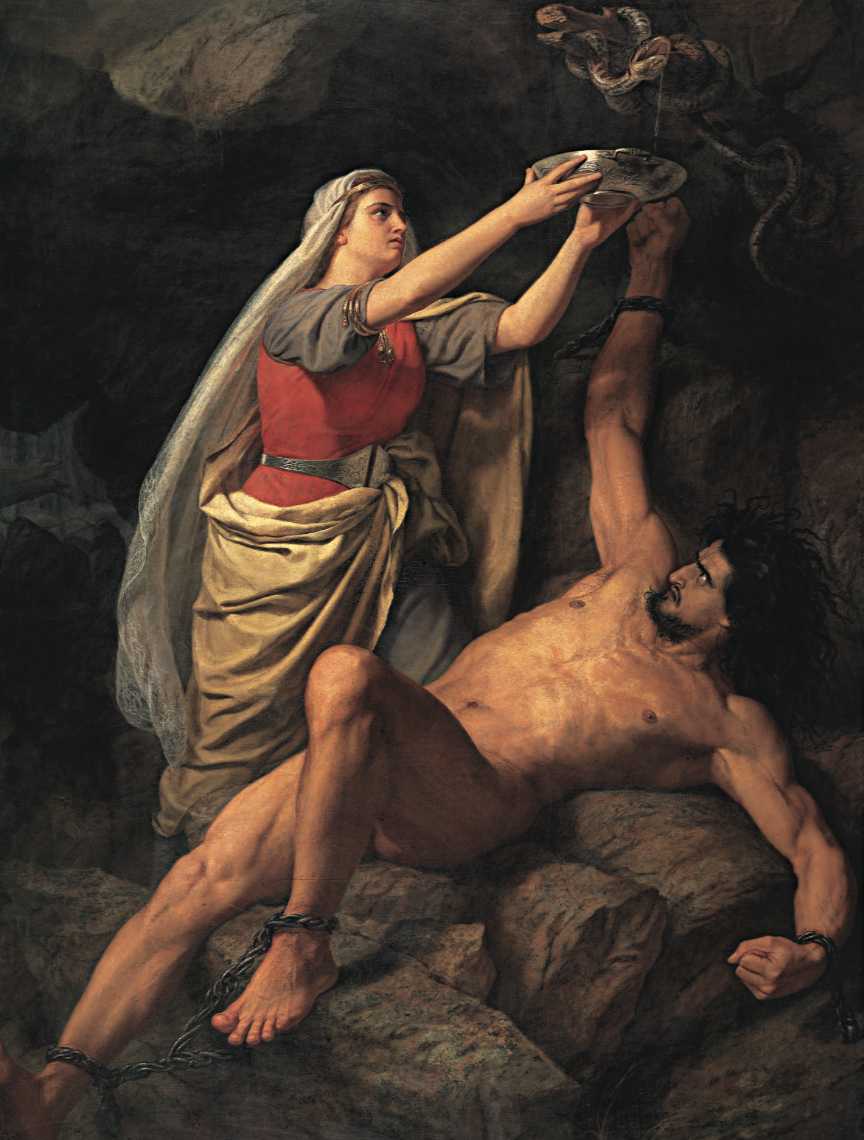 После похорон Бальдра боги узнали, что именно Локи устроил роковое убийство. Боги поймали Локи вместе с женой Сигюн, сыновьями Нарви и Вали и заперли в подземной пещере. Жестокое наказание задумали боги для коварного Локи.
