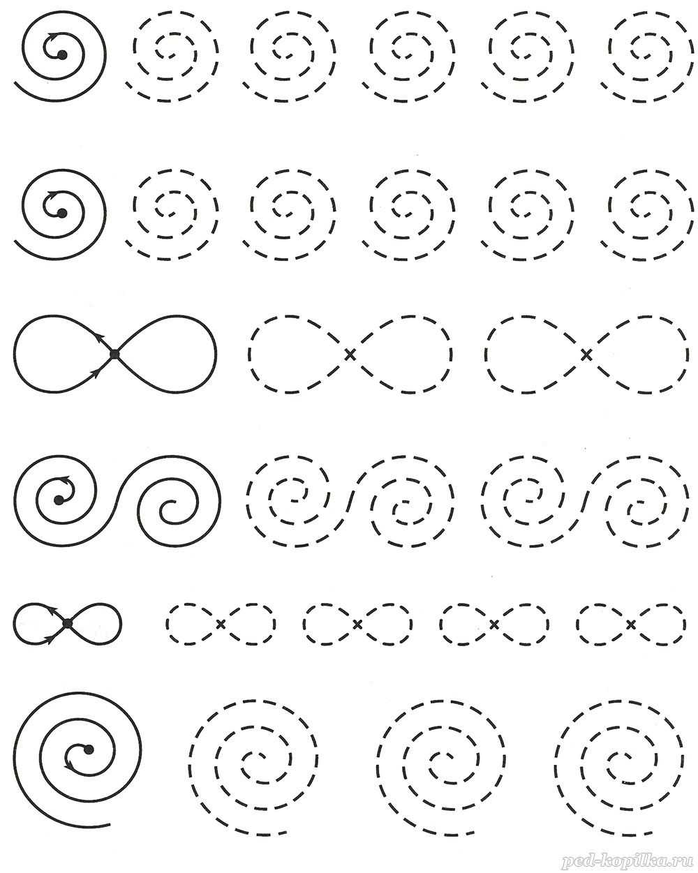 Обведи пунктирные линии, соблюдая направление по стрелочкам.