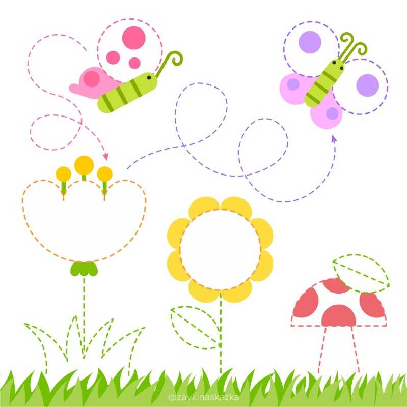 Обведи пунктирные линии.