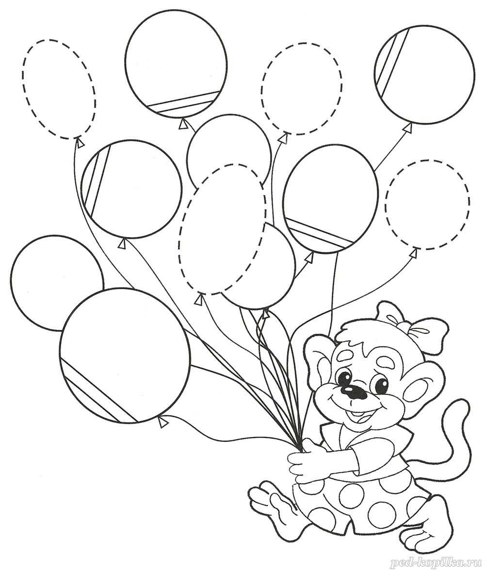 Обведи воздушные шарики и раскрась картинку.