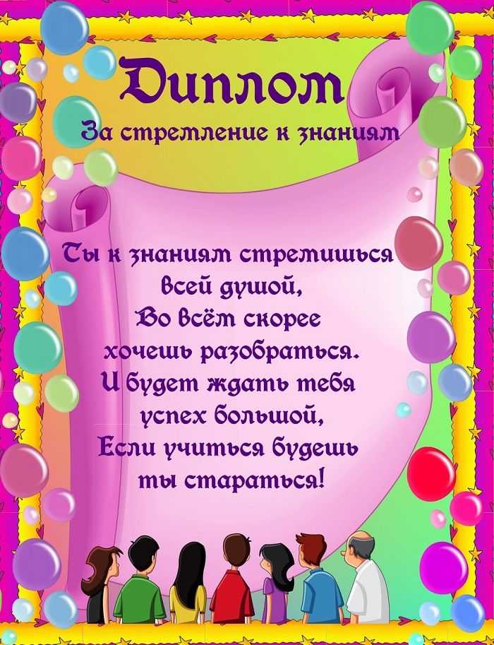 Текст — главная часть похвального диплома. Готовый шаблон находят в интернете или слова сочиняют самостоятельно
